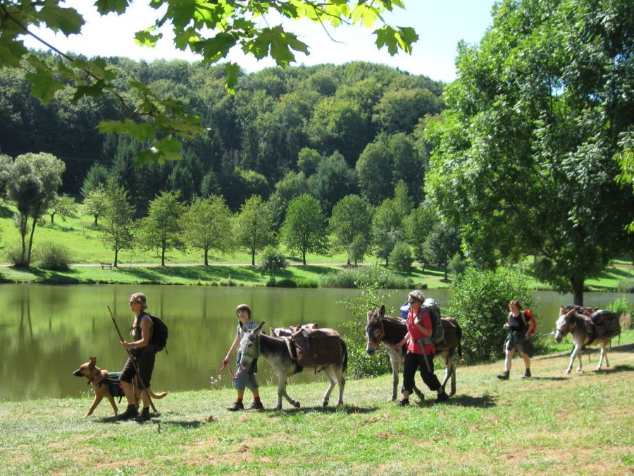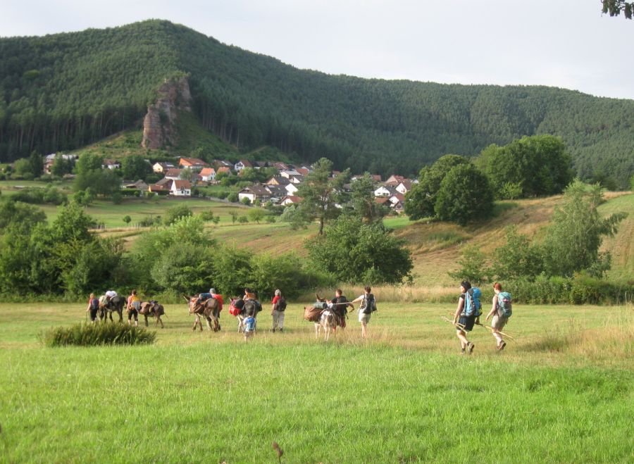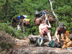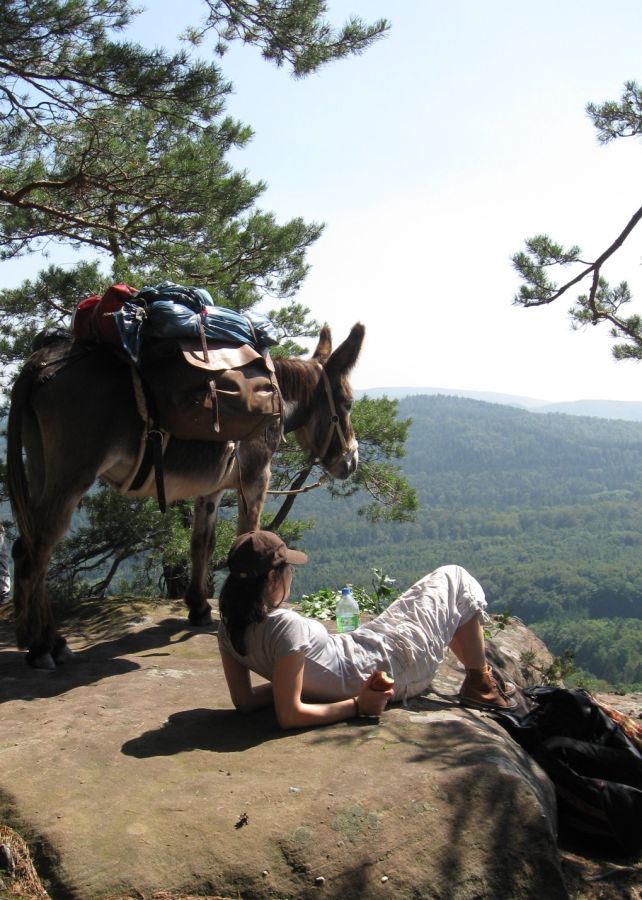 Über Wiesen und durch Mischwald zieht dann die Eselkarawane durch die Lande. Zur Mittagszeit und bei Sehenswürdigkeiten und Fernblicke kann es dann mal eine länge Pause geben. Gelegenheiten sich der Körperhygiene zu widmen werden genutzt – das kann beispielsweise ein See oder Bach sein; möglich ist auch, dass die selbstgebaute Walddusche zum Einsatz kommt. Unterwegs werden die Wasservorräte (und an einem Tag auch die Lebensmittelvorräte) aufgefüllt.