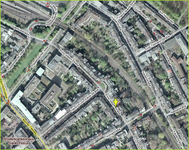 Unsere Praxis befindet sich auf der Prinz-Albert-Straße im Herzen der Bonner Südstadt. Mit den Bahnlinien 61 und 62 erreichen Sie die Haltestelle "Königstraße", welche in unmittelbarer Nähe der Praxis liegt. Vom Hauptbahnhof sind es nur 5 Gehminuten. In unserem Innenhof finden Sie eine begrenzte Anzahl an Parkplätzen.